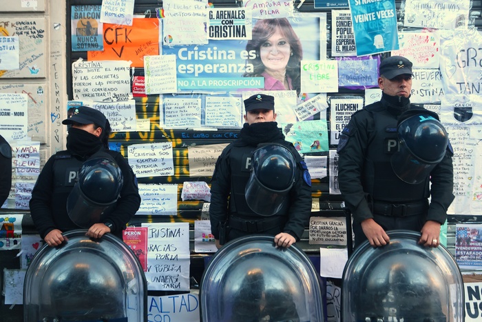La ofensiva para silenciar a Cristina Fernández de Kirchner continuó en la madrugada de ayer con el ilegal operativo de despliegue de policías de la Federal y la colocación de vallas frente al domicilio de la exmandataria. El argumento del Ministerio de Seguridad fue que “correspondía crear una zona estéril para evitar cortes de calles”. La Federal no tiene jurisdicción, ya que sólo está habilitada para custodiar edificios federales como la Casa Rosada, el Congreso y la Catedral. Cerca de Patricia Bullrich admitieron que la idea era forzar a la Policía de la Ciudad para que interviniera, algo que, por esta vez, no ocurrió. Para evitar caer en la provocación e intimidación del Gobierno, la expresidenta le pidió a la militancia que traslade el banderazo que se iba a realizar en la puerta de su casa a Parque Lezama. En ese acto, envió un mensaje en el que aseguró que el objetivo de la Casa Rosada es "generar conflicto y caos". "Esa mujer (Bullrich) quiere mucho protagonismo, porque, en el fondo, al igual que Macri, es una gran y absoluta fracasada”, sentenció. La Cámpora, además, denunció que la policía graba imágenes del balcón de Cristina.
