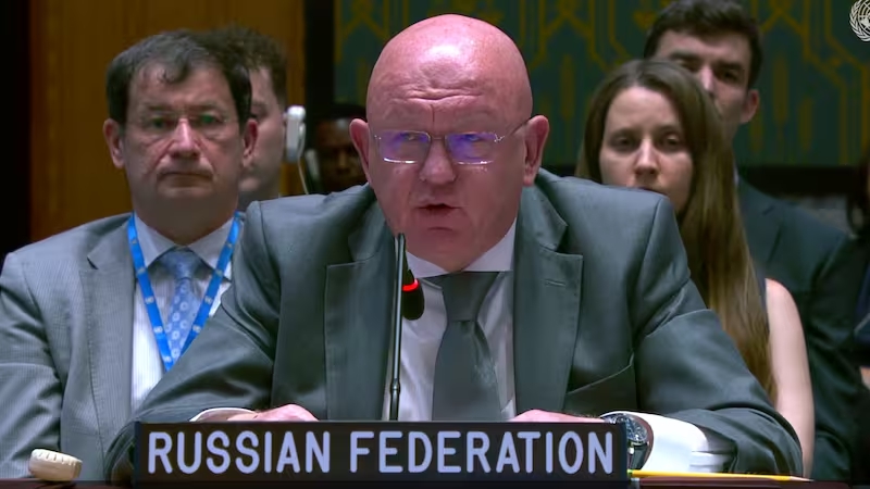 Durante el Consejo de Seguridad de la ONU para abordar los bombardeos estadounidenses a instalaciones nucleares de Irán, el Representante Permanente de Rusia ante la ONU, Vasili Nebenzya, reprochó duramente las acciones militares de EE.UU.