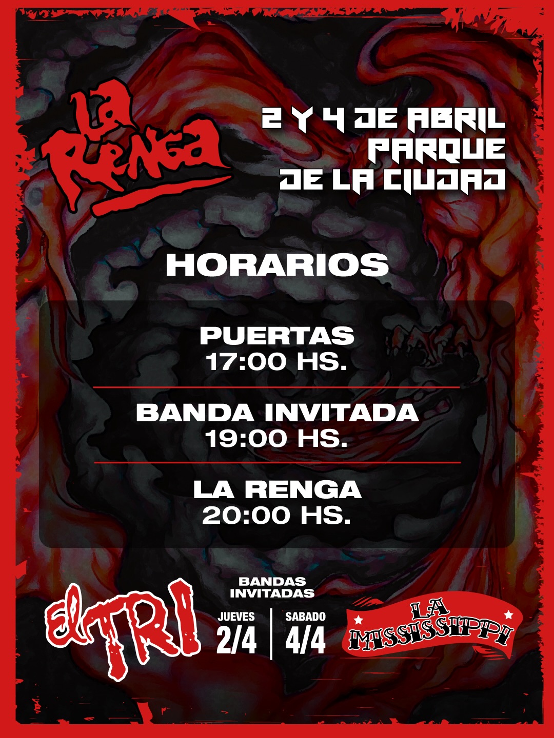 El sábado 4 de abril, La Renga contará con la presencia de La Mississippi, conocida por su fusión de rock y blues, que aportará un toque especial al evento. La combinación de estos dos gigantes del rock argentino y latinoamericano asegura un fin de semana cargado de buena música y vibraciones intensas.