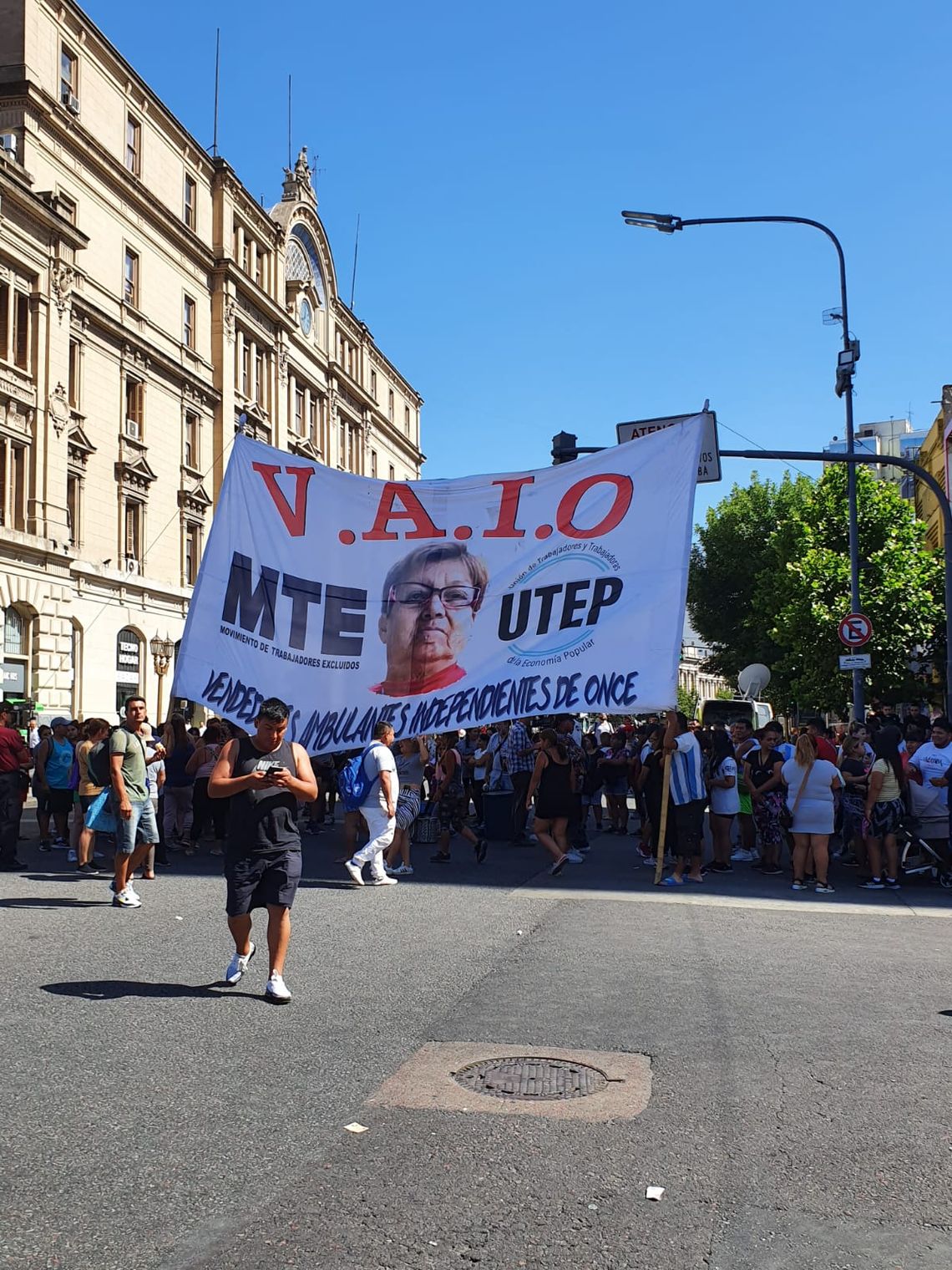 También se sumaron manteros a la manifestación para exigir que los efectivos les devuelvan la mercadería incautada.