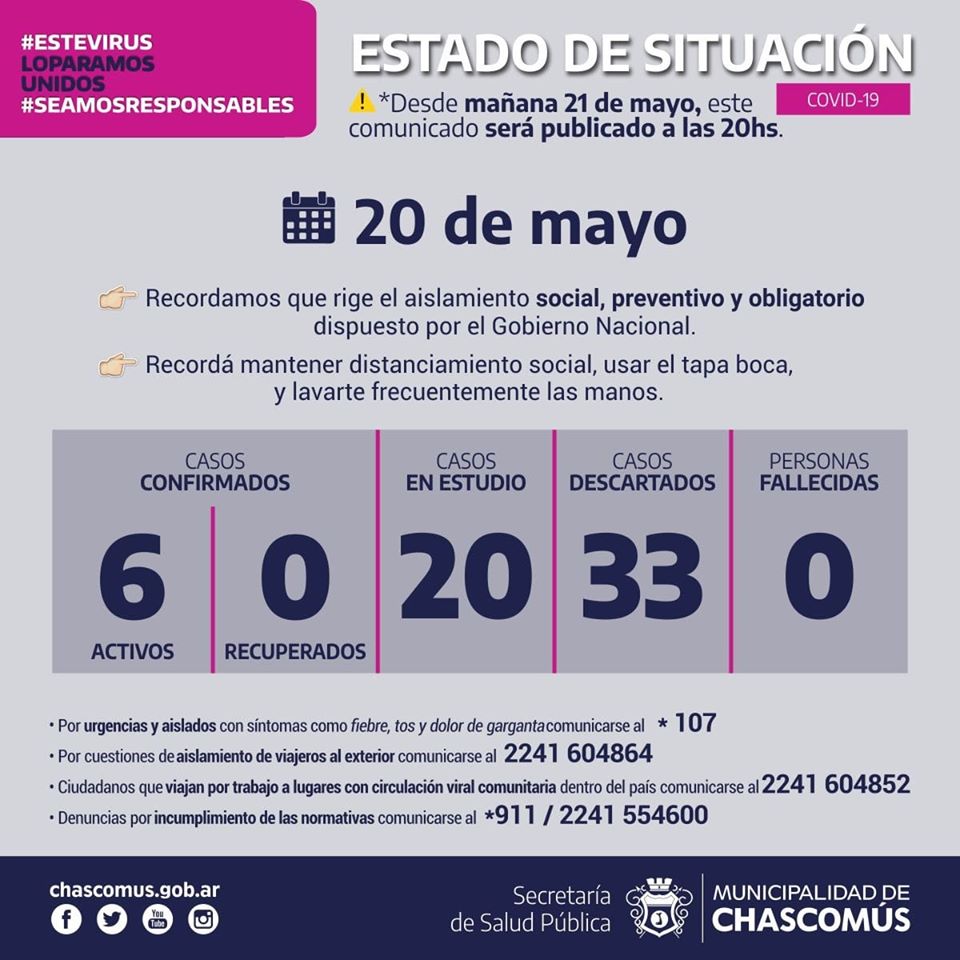 (Fe de Erratas: en el Reporte del 19 de mayo, se contabilizó un sospechoso de más que correspondía al caso positivo)