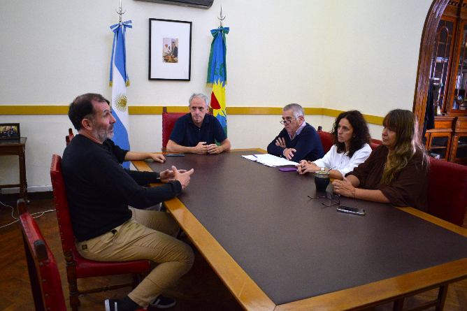 La reunión se llevó a cabo en el despacho comunal y contó con la participación del presidente de la Delegación local del Colegio, Facundo Campos. También estuvieron presentes la directora de Planeamiento Urbano y Obras Privadas, Patricia Méndez, y la directora de Obras Particulares, Rosario Placenave.