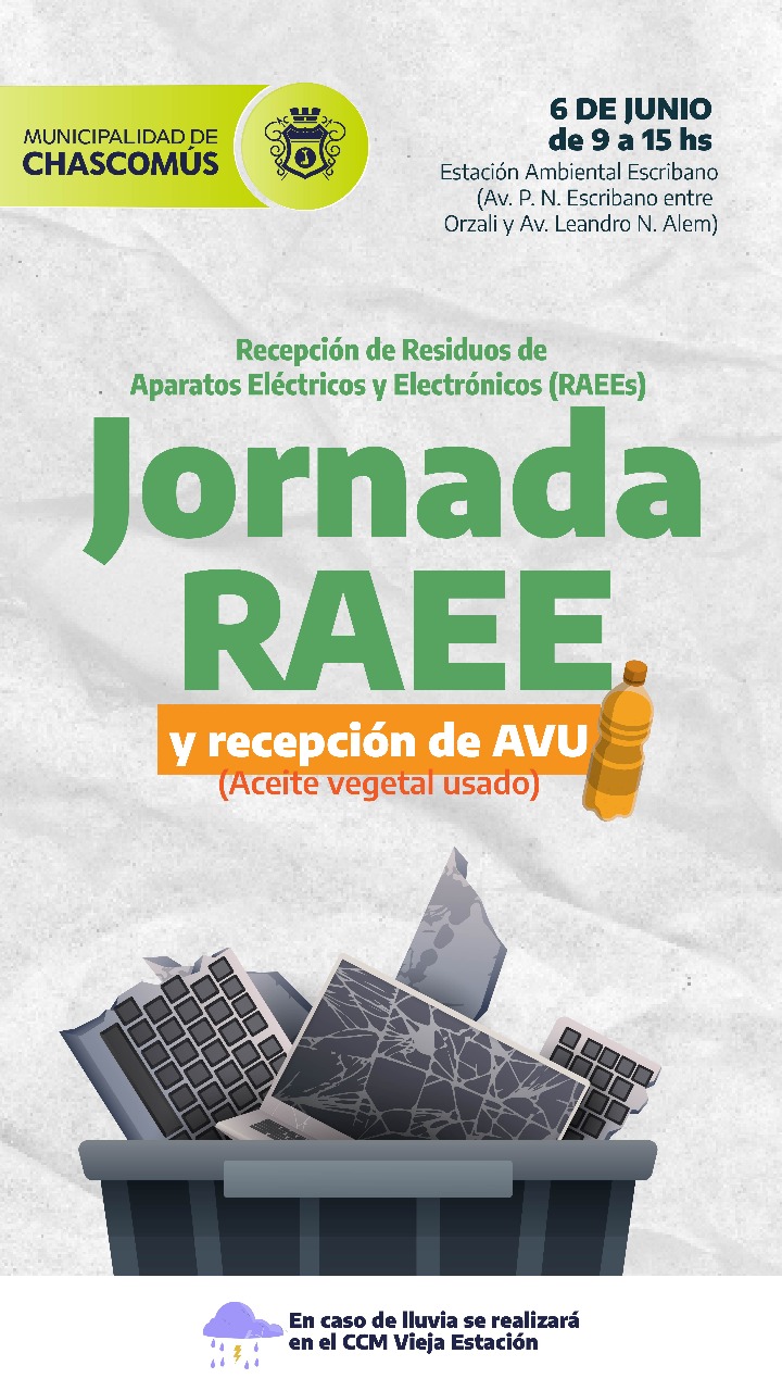 El próximo viernes entre las 9 y las 15 hs, se realizará una nueva jornada de Recuperación de Residuos de Aparatos Eléctricos y Electrónicos (RAEEs), una oportunidad para descartar de manera responsable estos residuos, que necesitan un tratamiento particular por las características físico químicas de sus componentes.