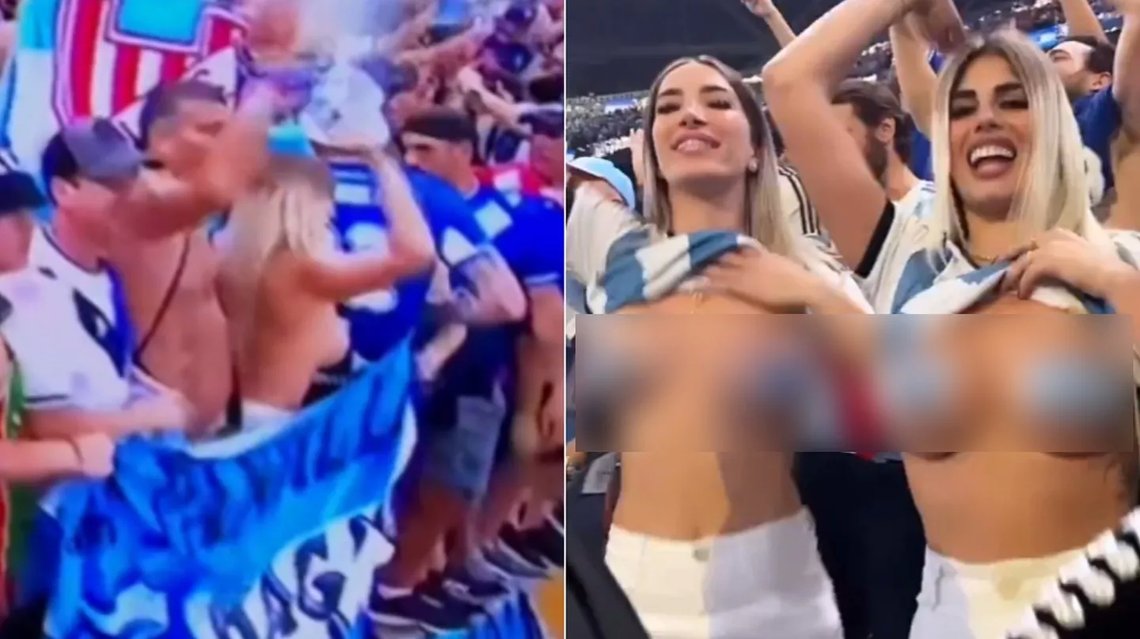 "El que es campeón del Mundo festeja como quiere", publicó en su cuenta de Instagram Milu Barbie (@milubarbiie_), quien junto a su amiga Noe (@noe.dreams1), se levantó la remera dejando el torso al descubierto y fueron captadas por las cámaras de la televisión oficial. Luego argumentaron que era una promesa de cara a la final, y que debían cumplirla, cosa que hicieron con éxito.