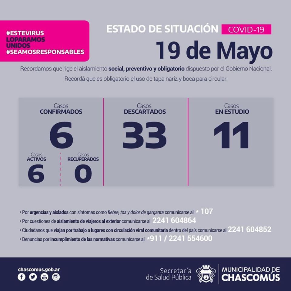 🔖Hoy se confirmó un nuevo resultado positivo COVID 19 en la ciudad, registrando un total de 6 casos confirmados.